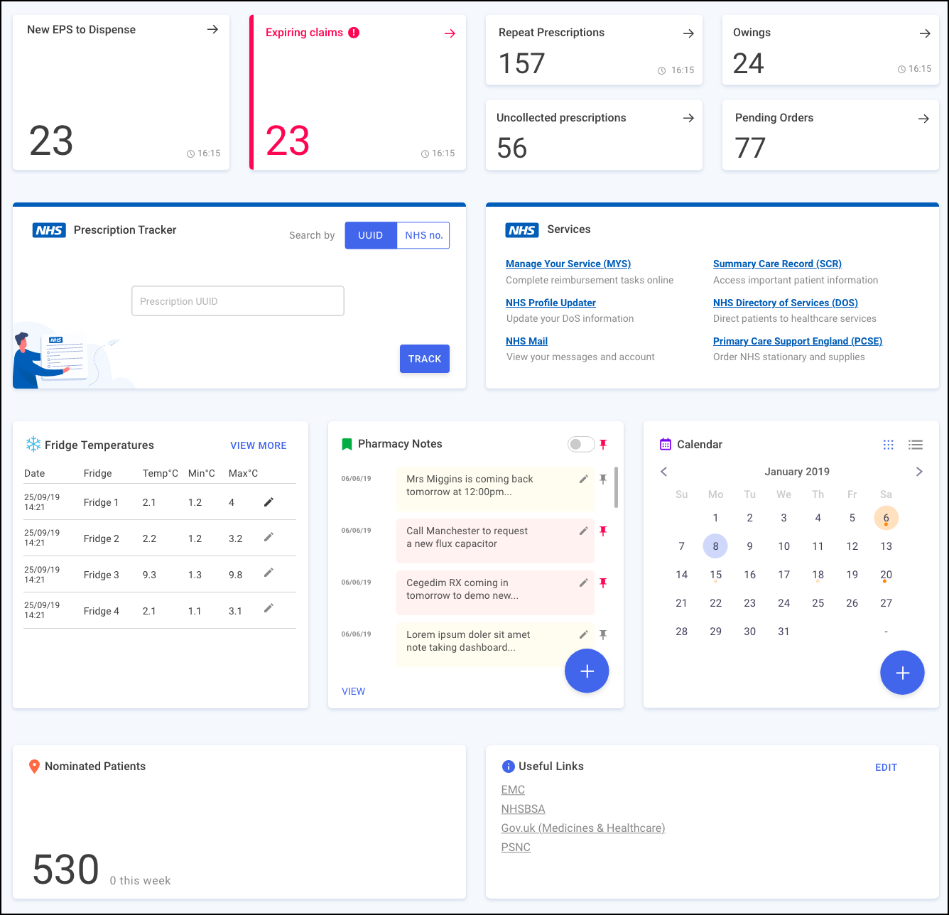 The Pharmacy Notes tile enables any staff member to add or edit a note on the dashboard. Any member of staff with Pharmacy Manager access can: