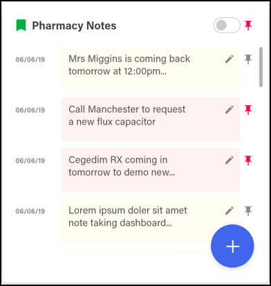 . - View Pinned Pharmacy Notes Only - Select the Pin toggle