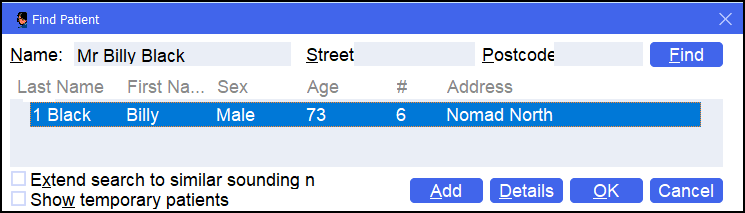 - Select an existing patient within Pharmacy Manager and add them to the nursing home. See Selecting a Patient, or