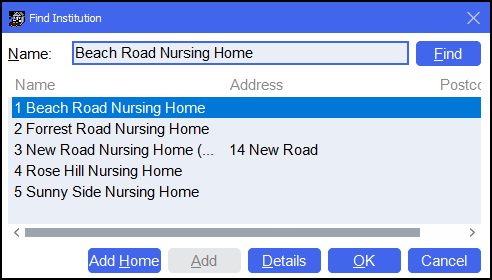 Select the required nursing home from the list and then select Details