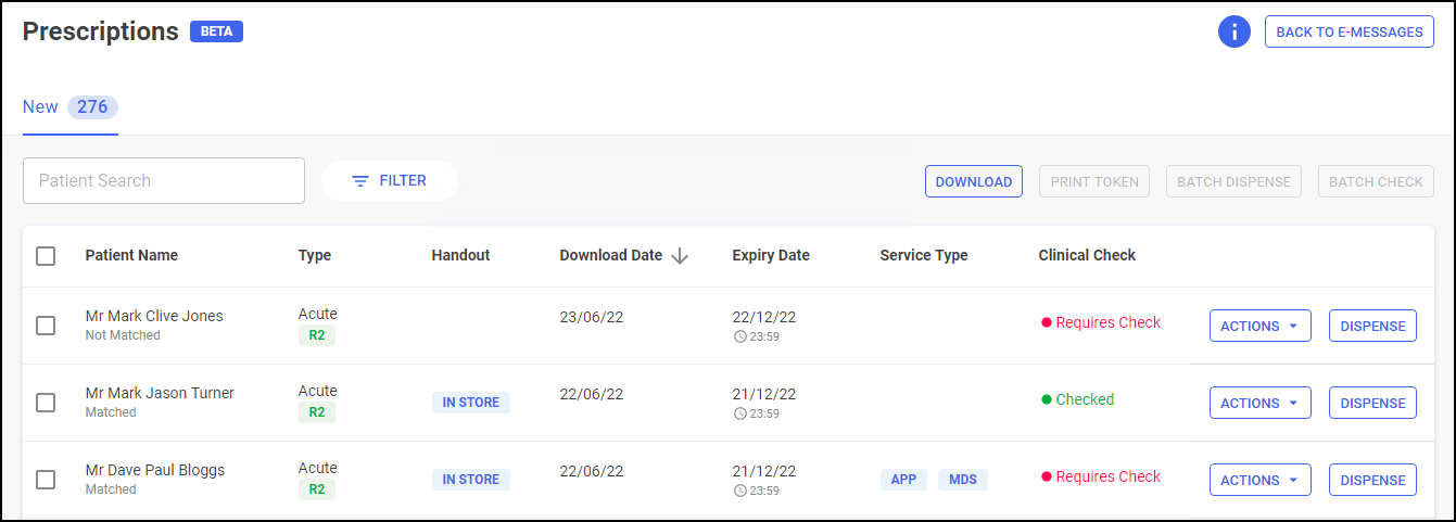 We have introduced a new Prescriptions screen in England to view, clinically check and dispense New EPS to Dispense prescriptions in Pharmacy Manager: