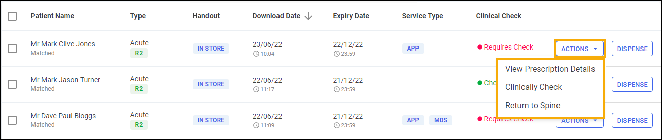 Return to Spine - Select to return the prescription to the NHS Spine.