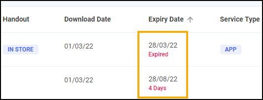 Prescriptions that are due to expire in the next 7-21 days display the number of days in amber: