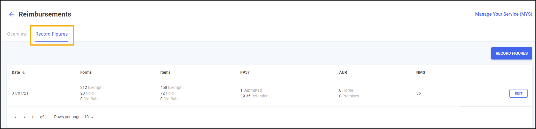 From the Reimbursements screen select the Record Figures tab: