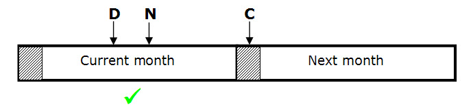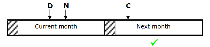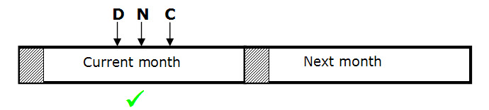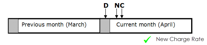 A prescription is dispensed (D) in March but notified (N) and claimed (C) in first five days of April will be included in the April payment at the old rate: