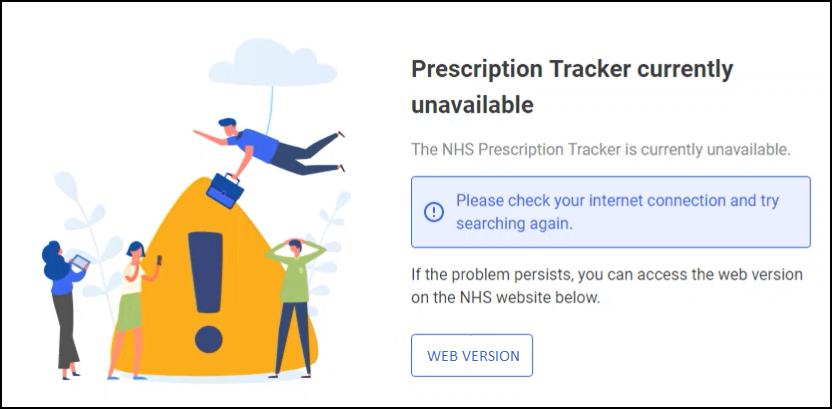 If no prescription is available, or the service is unavailable, the below notifications display: