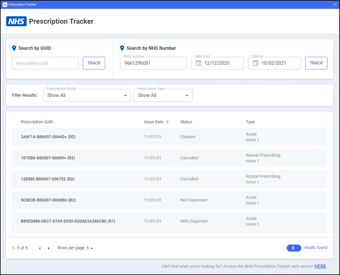 You can now access the NHS Prescription Tracker within Patient Details, helping you quickly locate and view all prescriptions for the patient.