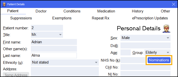 You can now update a patient’s nomination details without their NHS number entered in Patient Details. This allows you to nominate new patients as they are added to the system. From Patient Details: