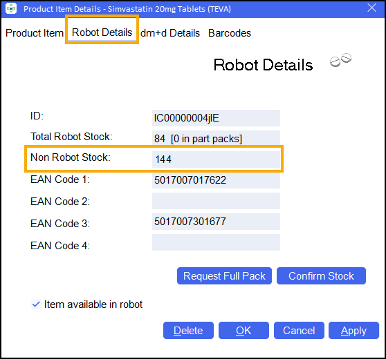 to transfer a pack from Total Robot Stock to Non Robot Stock. This will require a Stock adjustment reason to be entered. -