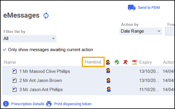 From the eMessages screen, we have updated the Delivery column header from to Handout: