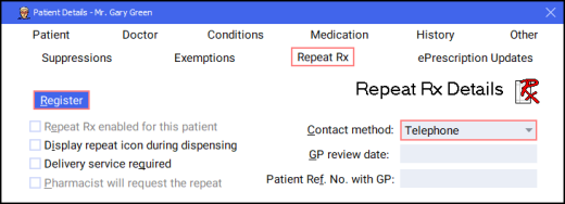 The patient is now registered for Repeat Rx. You now need to register the patient's GP for Repeat Rx.