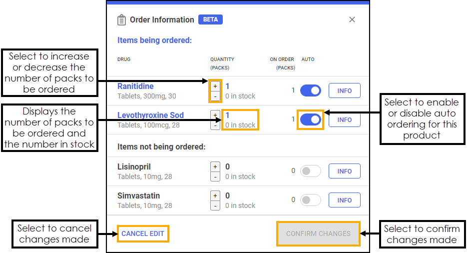 - The items that are being ordered as a result of the dispense.