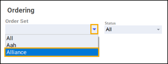 From Order Set, select the order set you wish to order from: