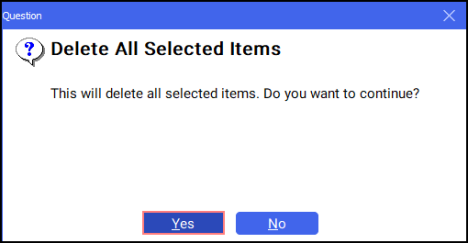 The Delete All Selected Items screen displays. Select Yes