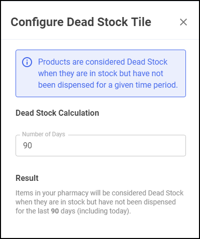 By default, the Dead Stock tile is set to look back over the last 90 days when calculating which products are dead stock. To configure this setting: