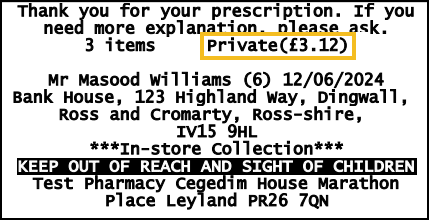 Print Prescription Cost On Bag Label - Ticked by default, when ticked the private prescription cost displays on the bag label. To hide the private prescription cost, remove the tick from Print Prescription Cost On Bag Label.