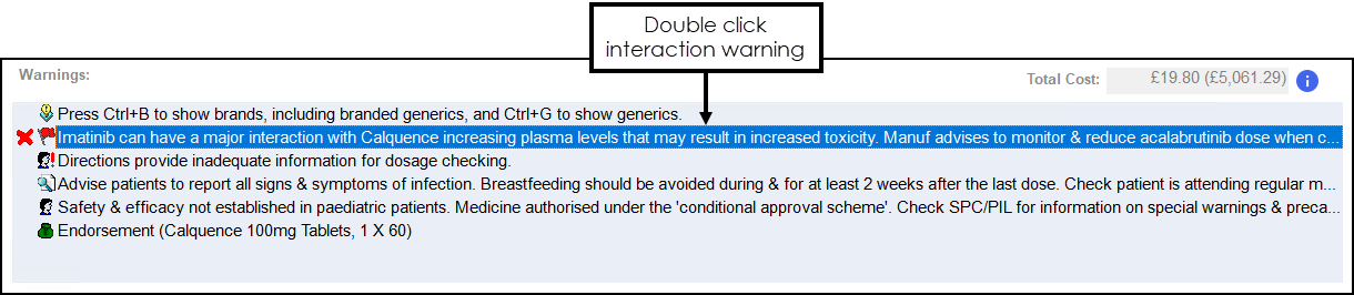 Starting an Interaction Intervention from a Warning on the Dispensary screen
