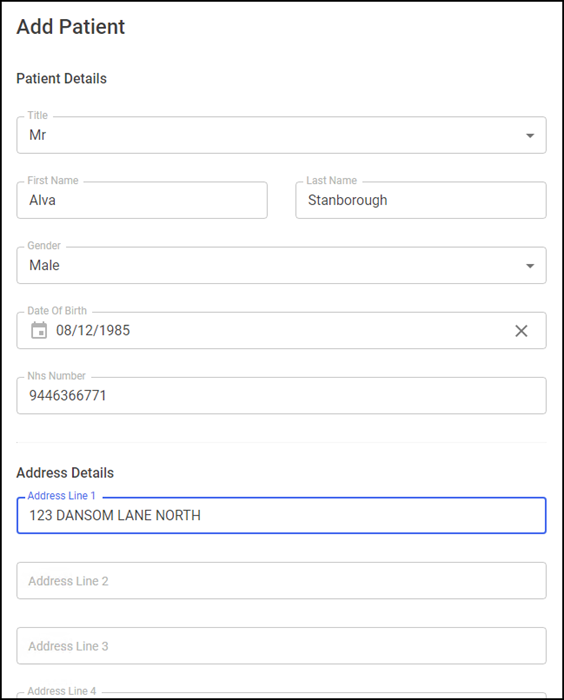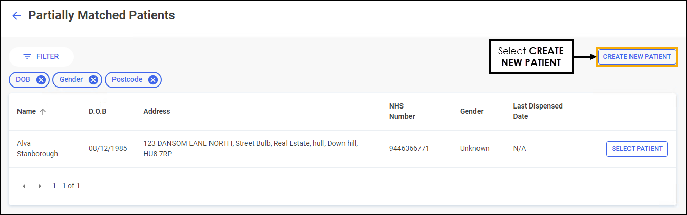 From either the Partially Matched Patients or the Find Patient screen, select CREATE NEW PATIENT