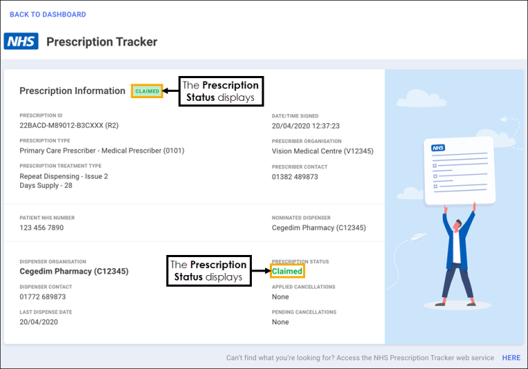 The NHS Prescription Tracker allows you to view a prescription's status on the NHS Spine.