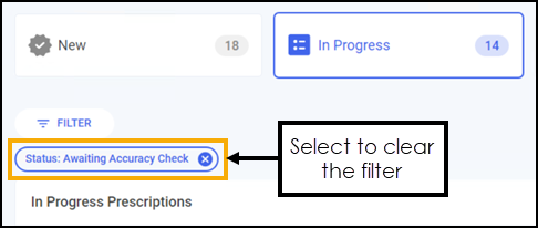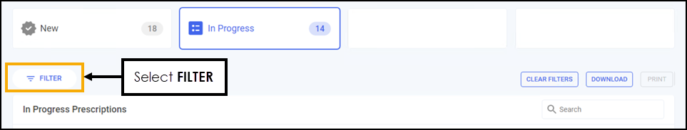 to clear the filters and display all prescriptions.The filter criteria displays below FILTER