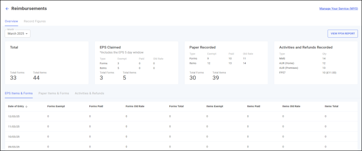 After Electronic Prescription Service (EPS) dispensing is configured at your pharmacy, your EPS figures automatically record in Pharmacy Manager. Your paper figures, including any 2DRx prescriptions, must still be recorded, in our Reimbursements module.