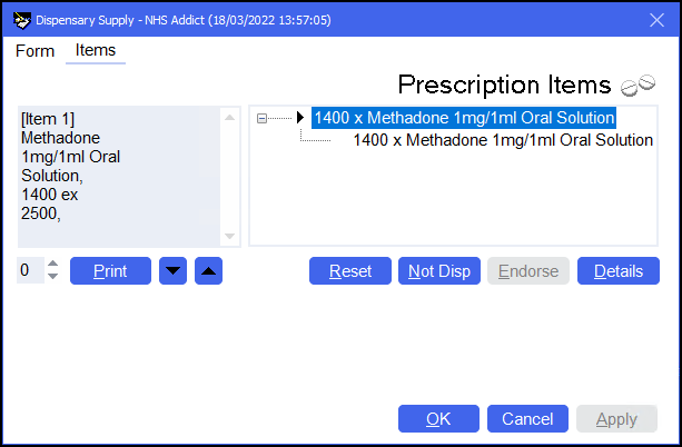 • Days supply - Enter the number of days supply you want to issue press Enter on your keyboard.