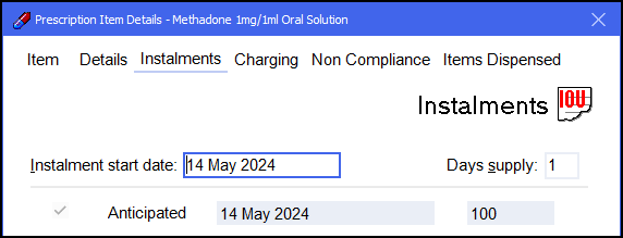 When dealing with certain drug classes, for example, controlled drugs, you may need to dispense a prescription using instalments.