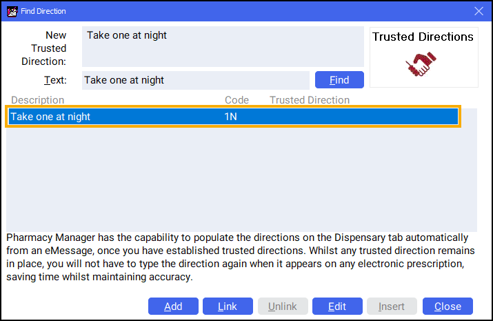 . - Select the required Trusted Direction: