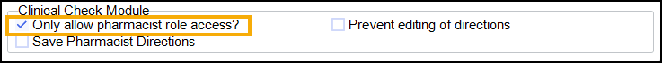 In Clinical Check Module place a tick next to Only allow pharmacist role access?: