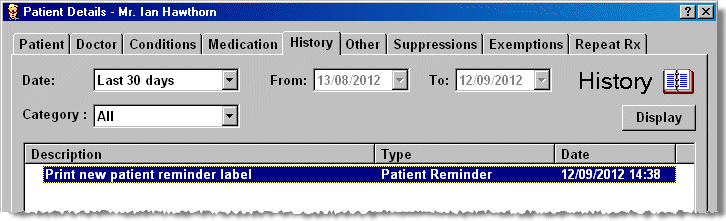 when a label has been printed, a reference is added to the patient's history.