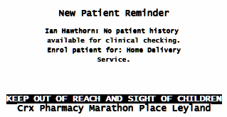 Pharmacy Manager can alert you when you are dispensing to a new patient who has no previous medication to clinically check against.