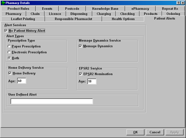 You may choose to generate alert labels for all newly added patients regardless of the prescription type - both electronic and paper - or just one specified type.