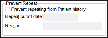 Prevent repeating from Patient history - Select to limit the historic patient data that can be repeated from. This is to ensure that the you are repeating from the most recent record.