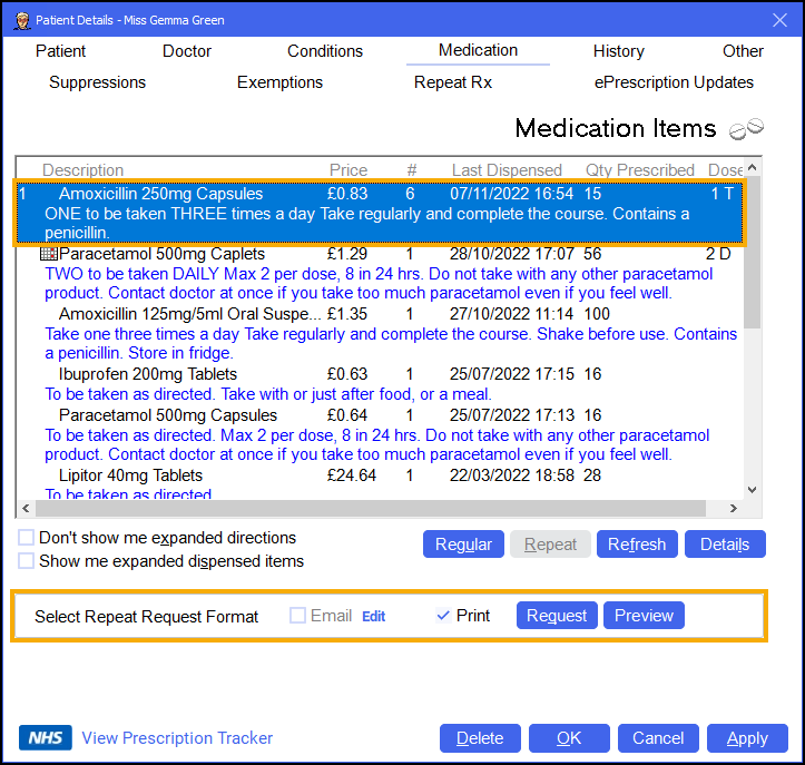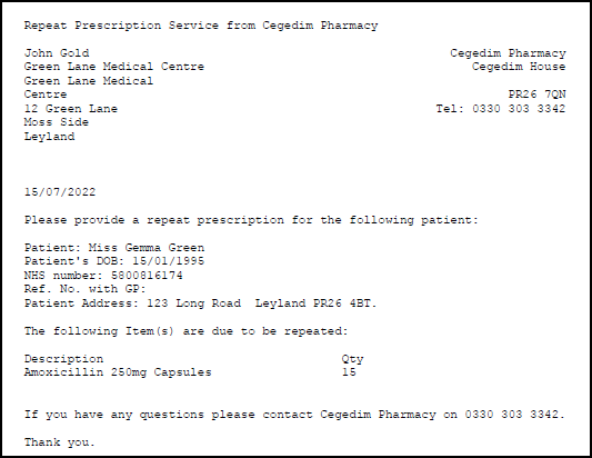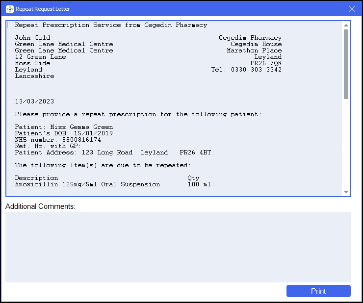 Pharmacy Manager allows you to quickly generate repeat request letters for a patient.