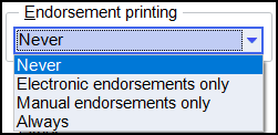 Select the drop-down in the Endorsement printing section and select the option that applies: