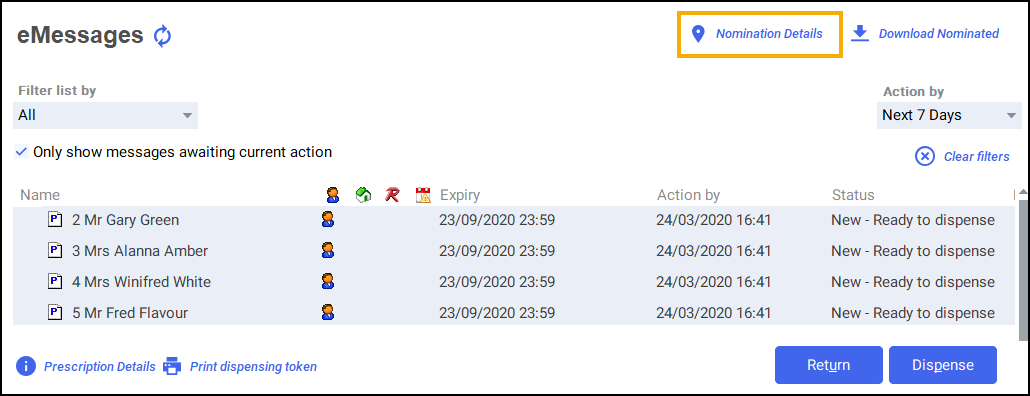 From the eMessages screen select Nomination Details