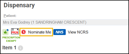 - When the patient is not currently nominated to your pharmacy. Select Nominate Me