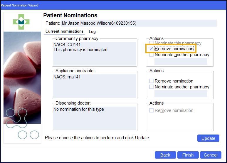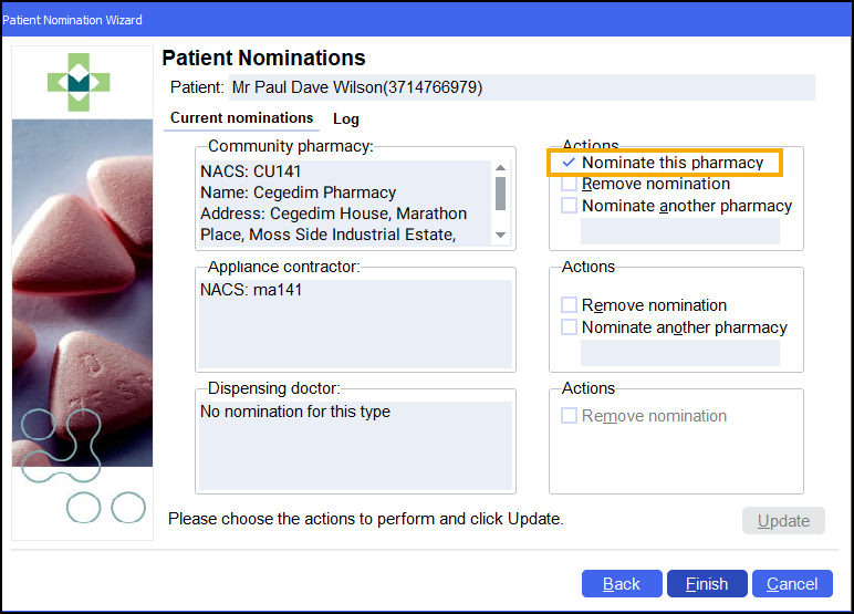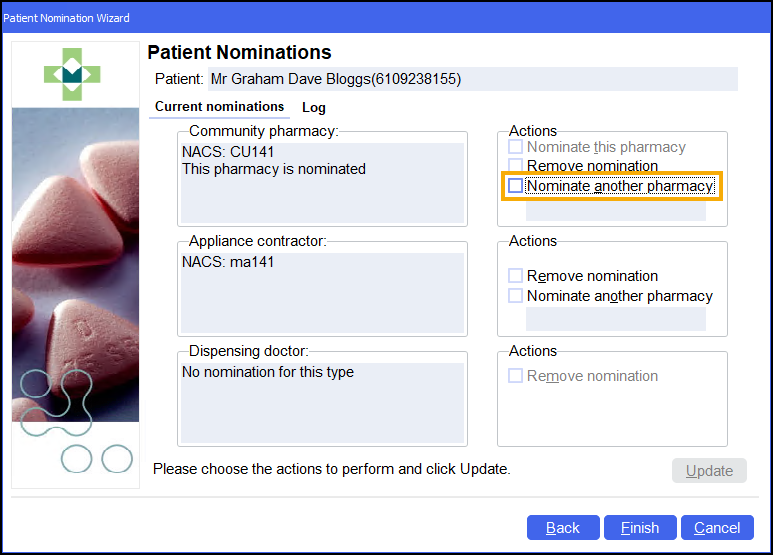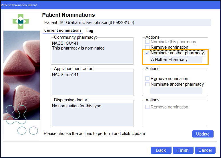 to update the patient's nominated pharmacy to your pharmacy.Important - You must check that the patient is happy to select your pharmacy as their nominated pharmacy for electronic prescriptions. -