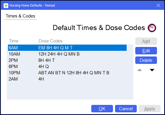 Setting Up Default Times and Dose Codes