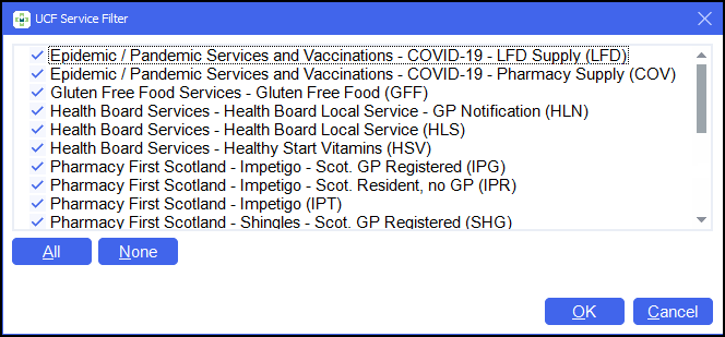Select which services to report on or use the All