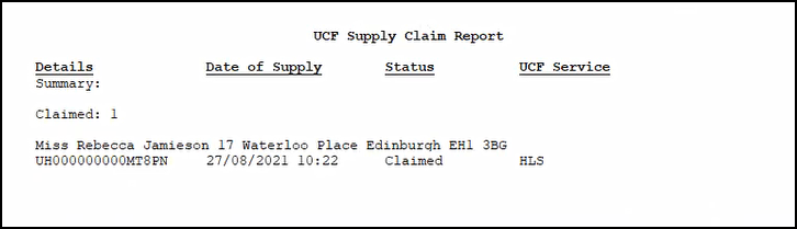 The UCF Supply Claim Report displays: