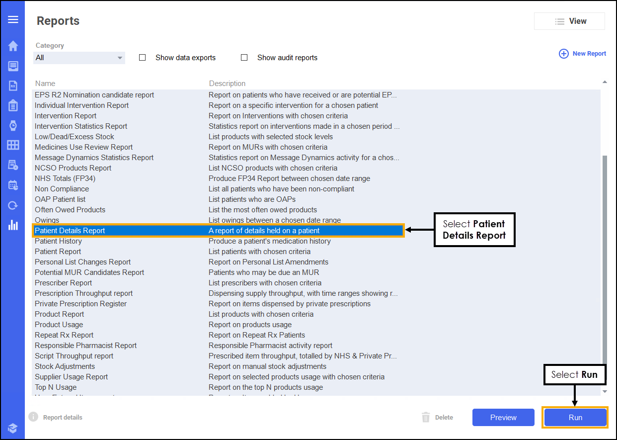 In the event that a patient (or their legitimate representative) requests a copy of the information held about themselves, you can produce a Patient Details Report. To run this report: