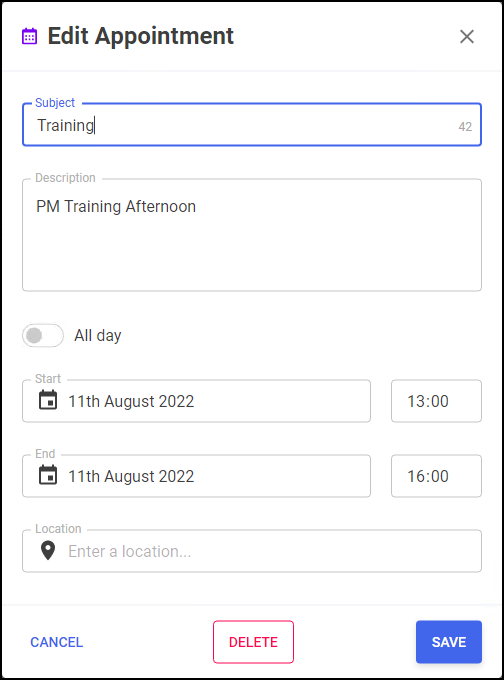 - Description - Enter any comments, for example, "PM Training Afternoon".