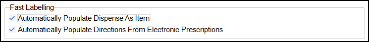 Automatically Populate Directions From Electronic Prescriptions - Tick to enable. If enabled, when you dispense a prescription the directions from the electronic prescription automatically populate on the Dispensary screen.