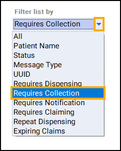. The eMessages screen displays. - Select the Requires Collection filter: