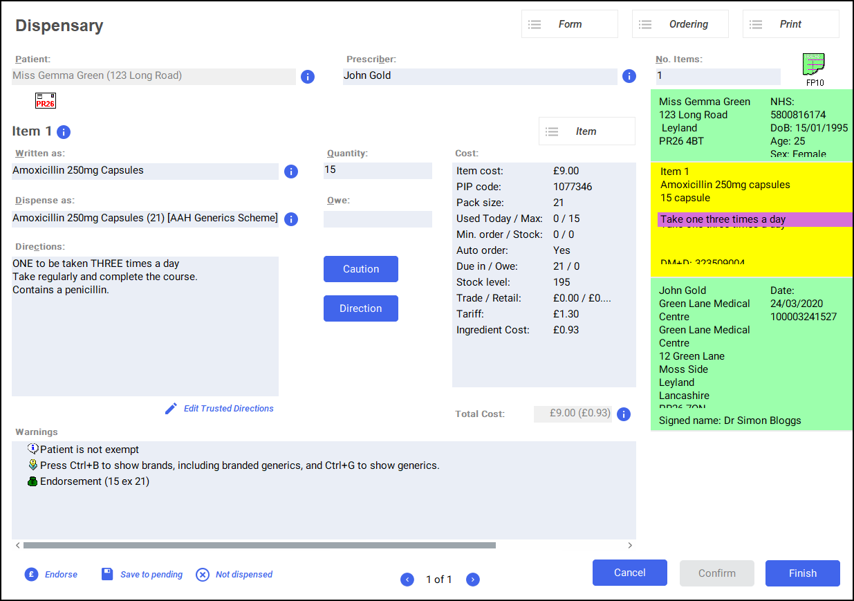 See Dispensing an Electronic Prescription for details. - Select Finish