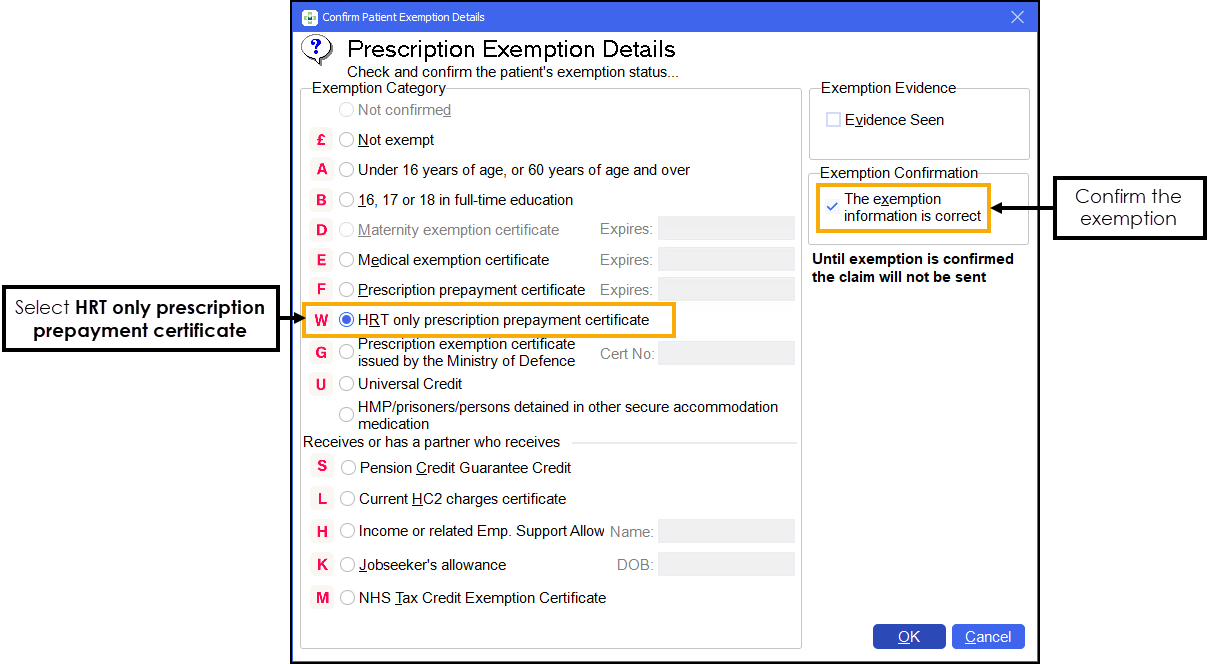 As of the 1st April 2023 a new prescription level exemption category was introduced in England to support the new Hormone Replacement Therapy Prescription Prepayment Certificate (HRTPPC).