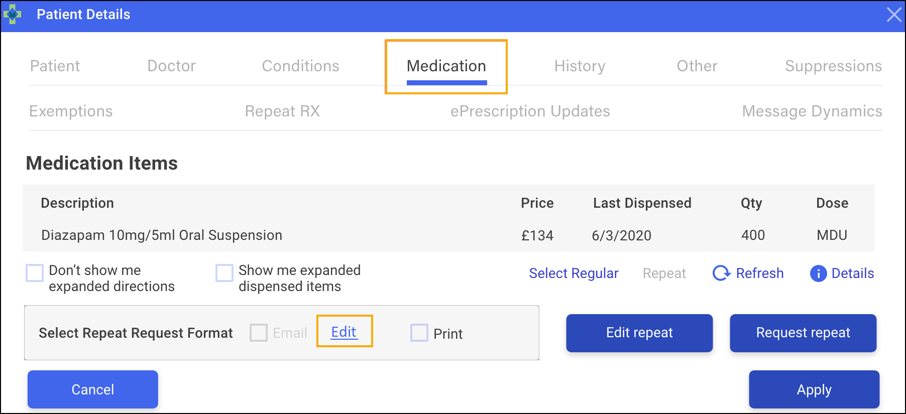 You can now send a repeat prescription request to a GP surgery via email in Pharmacy Manager. To use this feature, please follow the steps outlined below: