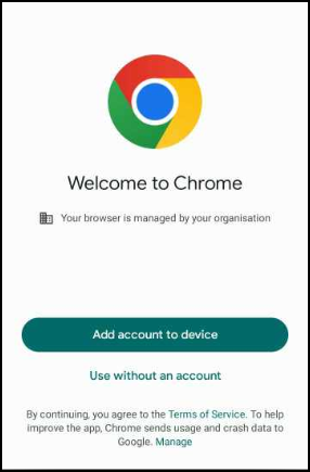When logging into the Handheld device for the first time you may get a Google Chrome log in request, please select Use without an account. Continue to sign into the Handout Manager Handheld Device.