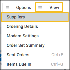 On the Ordering tab, select VIEW - Suppliers in the top right corner.
